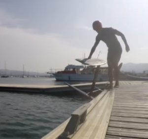 Getting the tip of the foil out of the water is relatively easy, but not falling afterward...